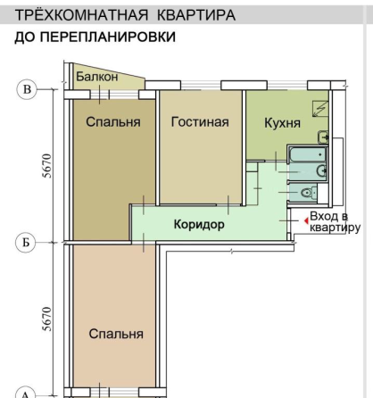 На фото Вашему вниманию представлен проект возможной перепланировки. Наше агенство готово помочь Вам с ремонтом квартиры в соответствии с Вашими пожеланиями. Оптимизируйте пространство, уберите длинный коридор, сделайте гостиную светлой и большой, организуйте гардеробную и эта квартира будет радовать Вас много лет.