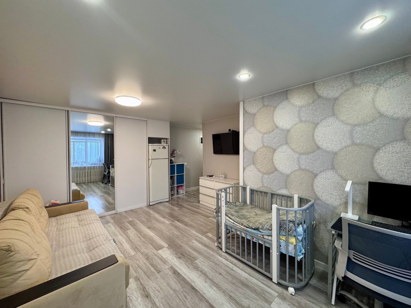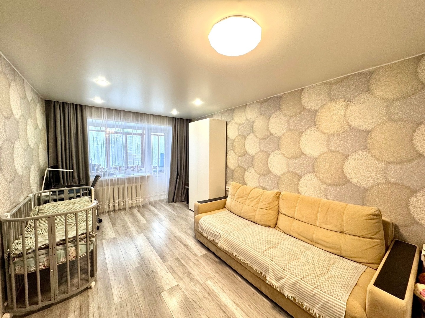 Оставляем новому собственнику: встроенный шкаф в комнате) кухонный гарнитур, плита, духовой шкаф и вытяжка.