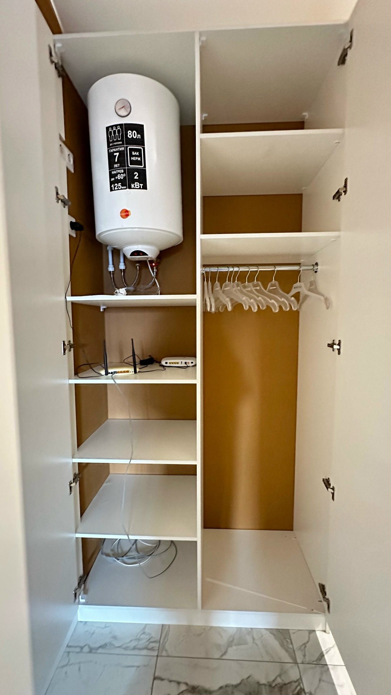 Варочная панель, духовой шкаф, холодильник, водонагреватель, стиральная машина.