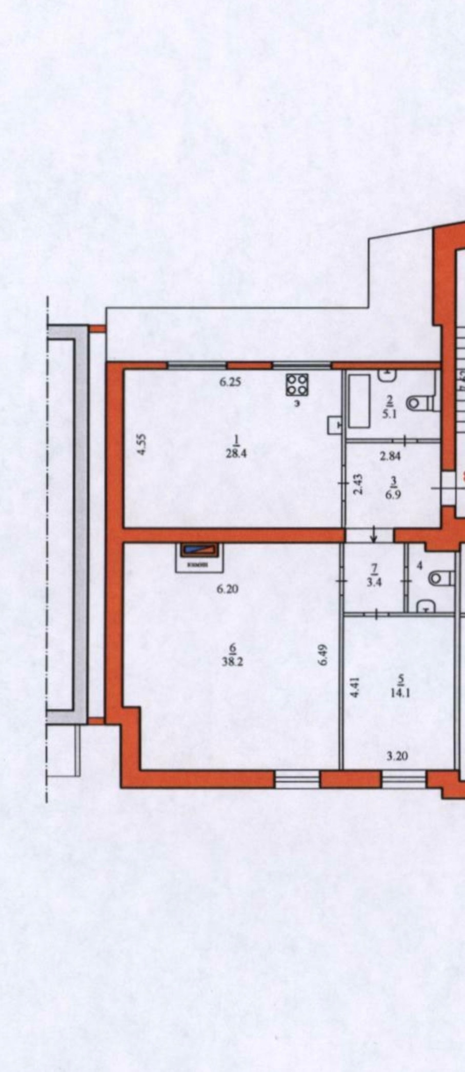 Площадь- 98,6 кв.м.