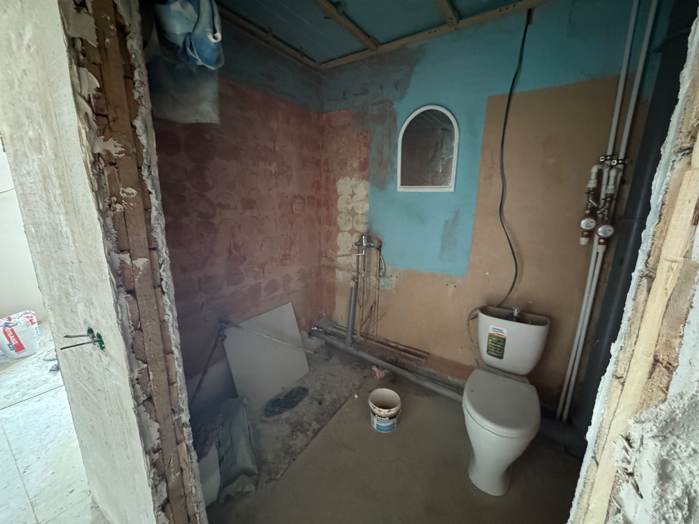 - Санузел - на полу ГВЛ, подготовлено под керамогранит
