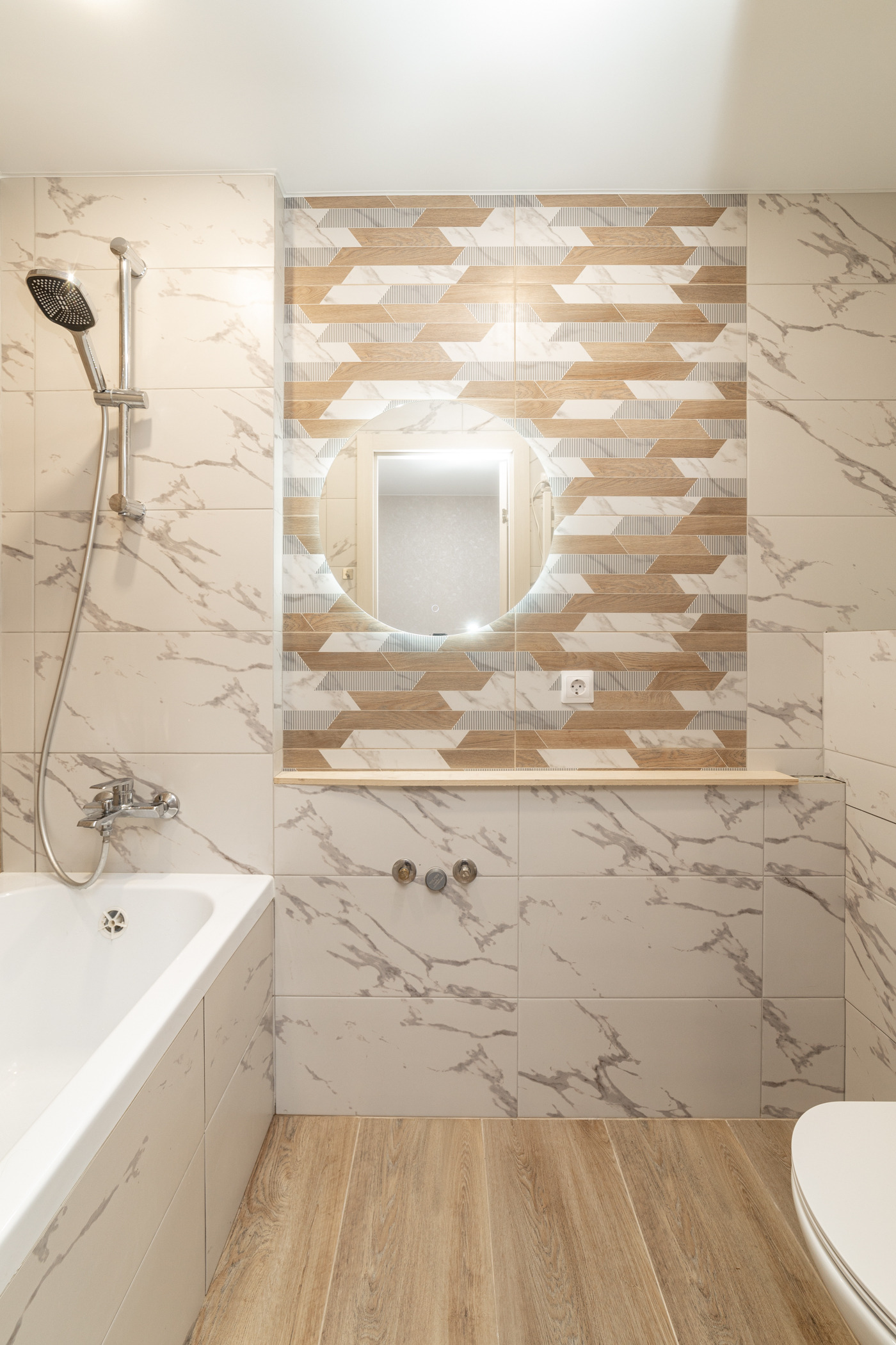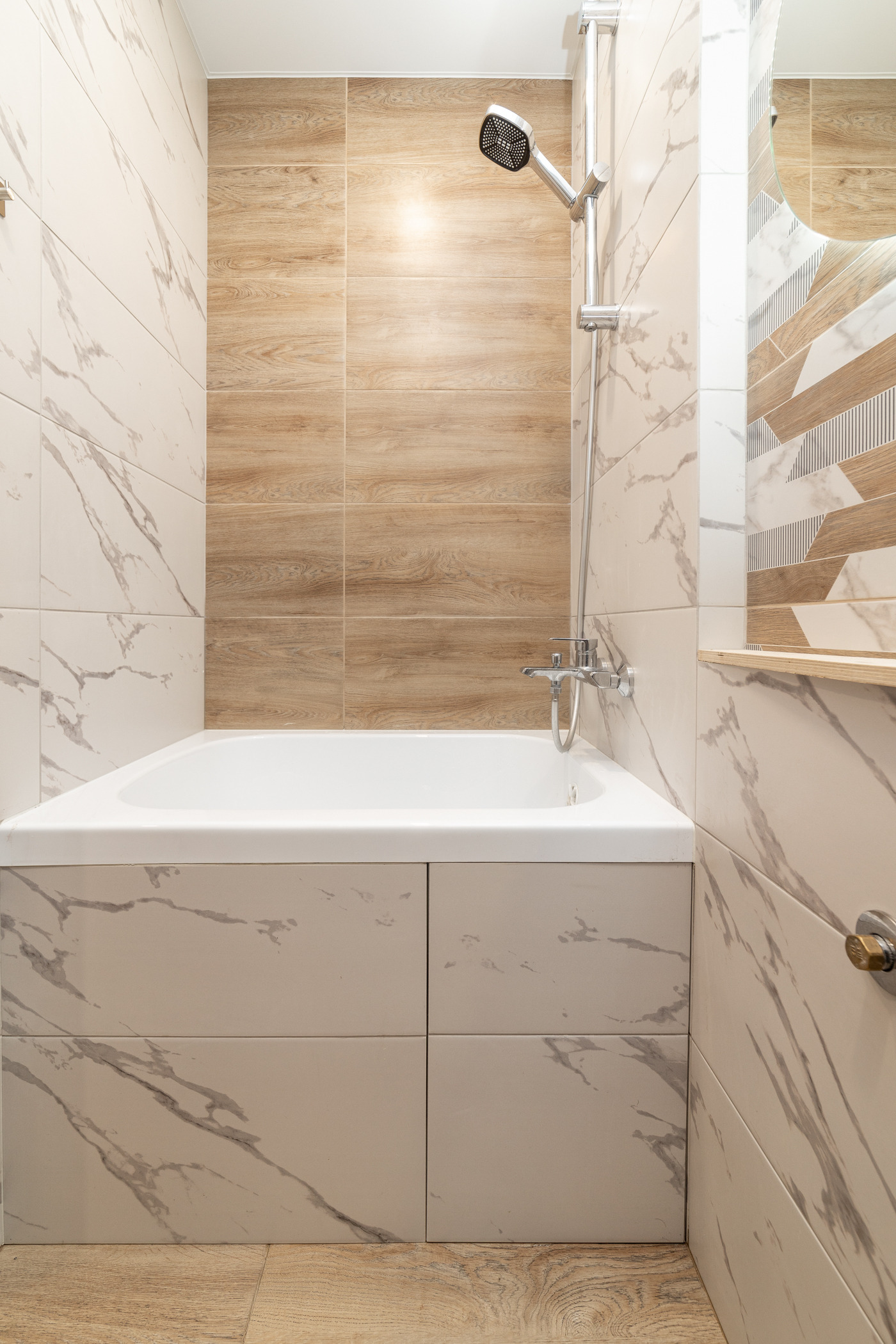 + Санузел совмещен, облицован кафельной плиткой;