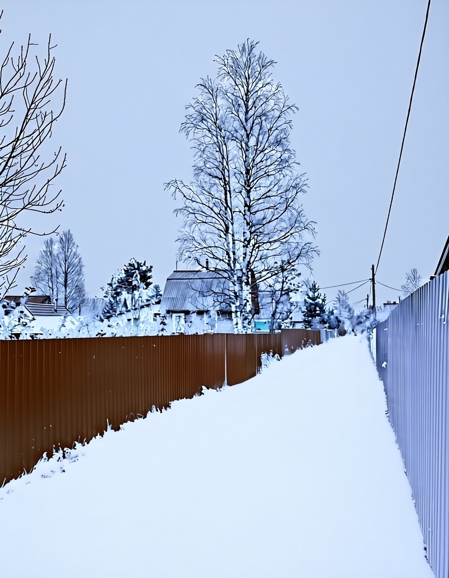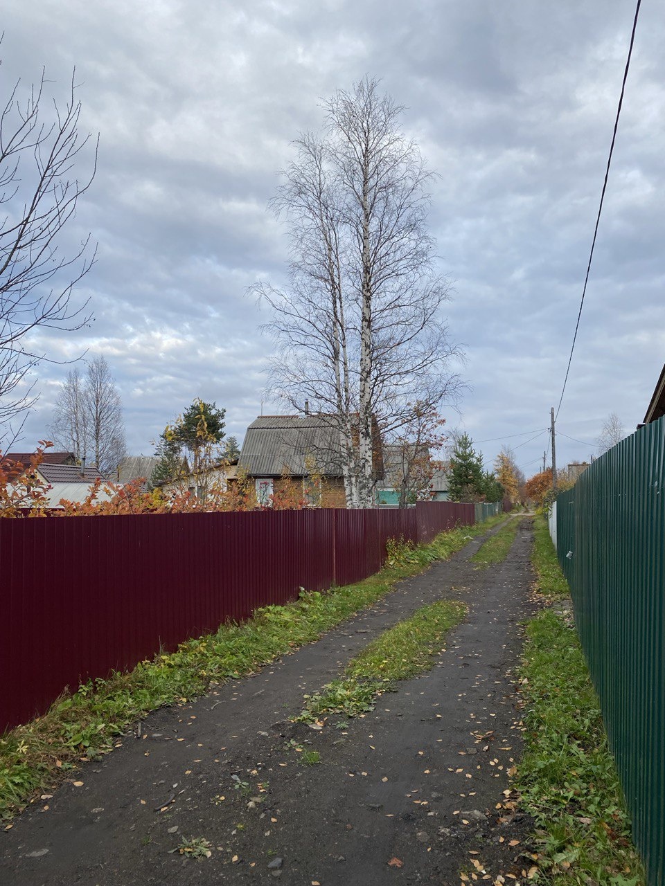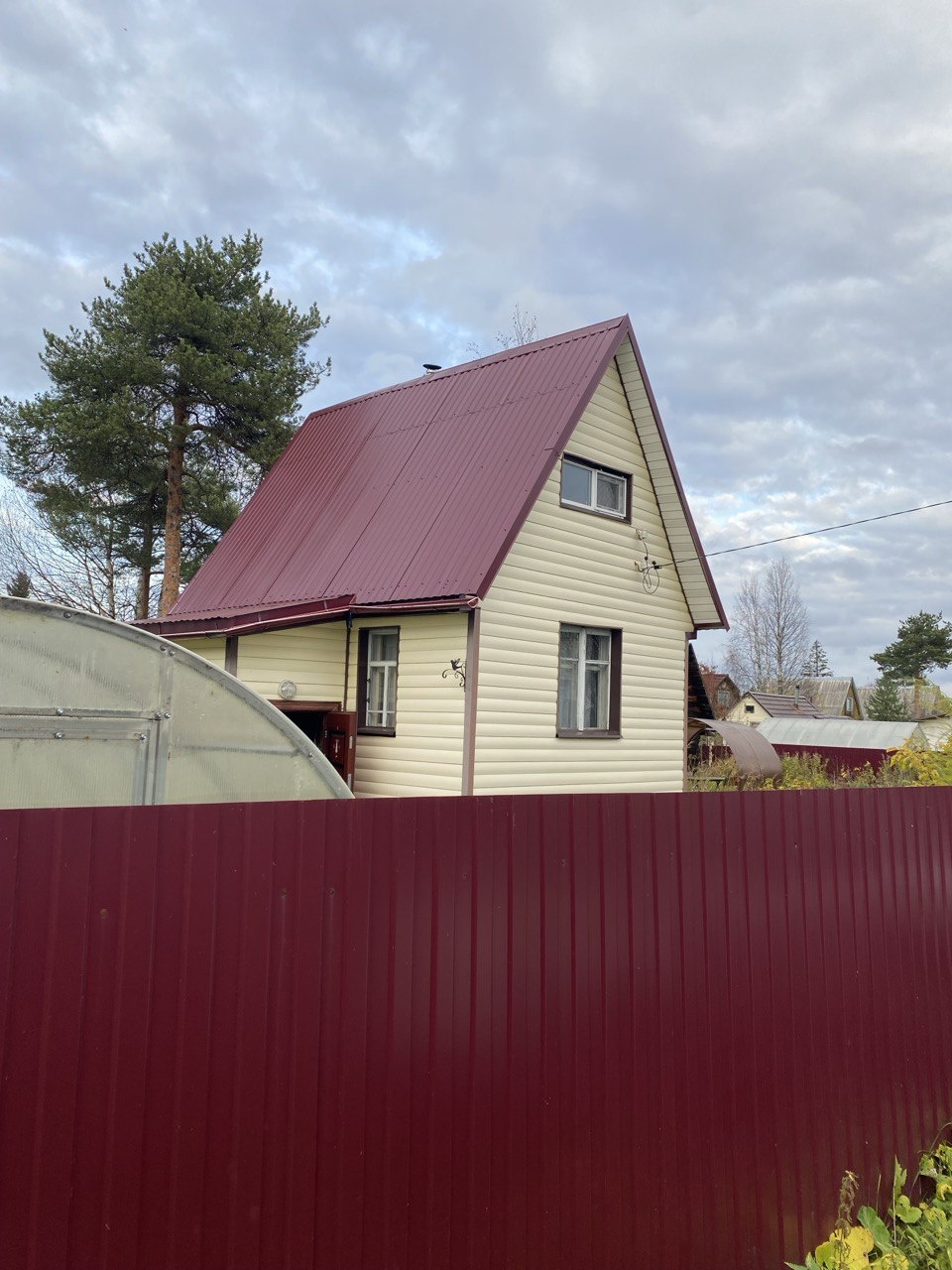 Забор со стороны дороги из профлиста. Есть свое парковочное место на участке. Отсыпано шлаком.