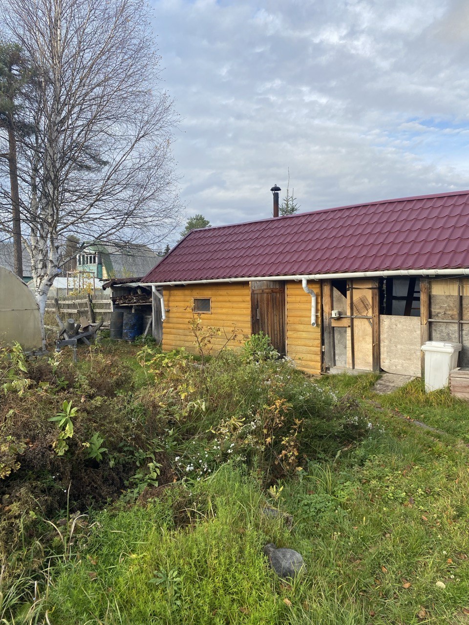 На участке также имеется отличная баня из бруса, которую мы планировали продлить и создать еще одну зону отдыха