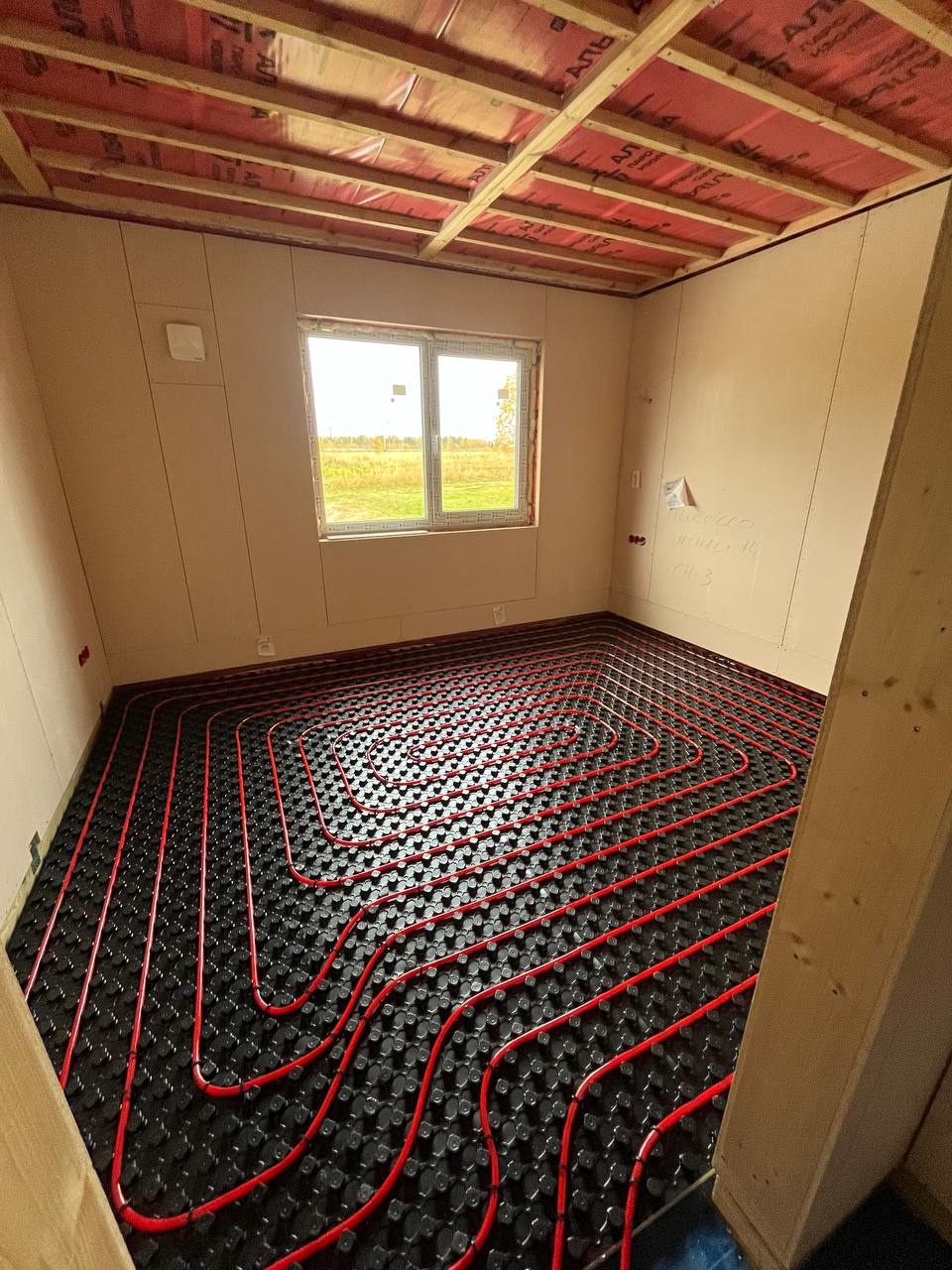 В сентябре в доме будет выполнен инженерный пакет : Установлены водяные теплые полы с электрокотлом, сделана стяжка, подключен бойлер косвенного нагрева, проведена черновая электрика (остается только установить чистовые розетки и выключатели на ваш выбор), разведена по дому система водоснабжения и канализации.