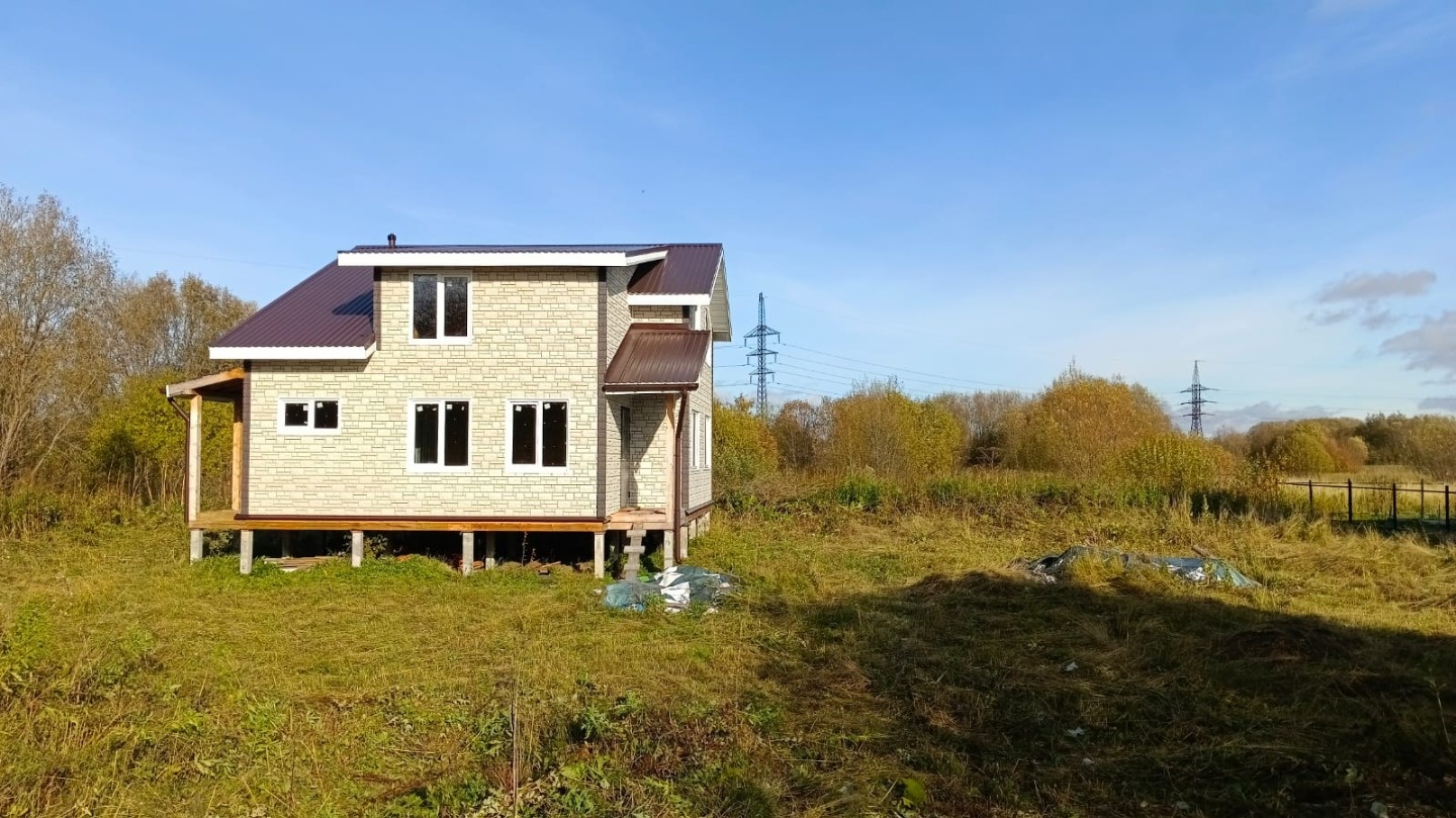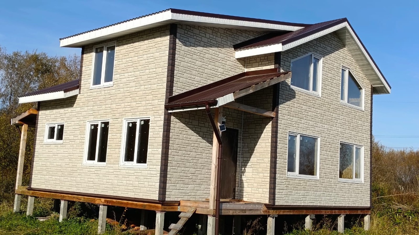 С наружи дом обшит фасадными панелями, на крыше профнастил кровельный, сваи ж/б с оголовками. Ссылка на объявление: https://софия29.рф/sale/salehouse/47658