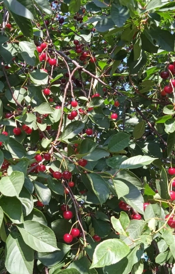 На участке много плодово-ягодных культур: малина, смородина сортовая (черная и красная), клубника, крыжовник, дикая слива, вишня.